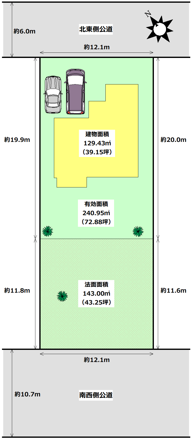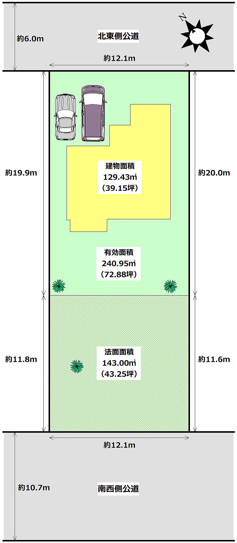 - 南10m公道×北6m公道の両面道路(敷地の南側は法面になっており、高台で日当たり抜群!)